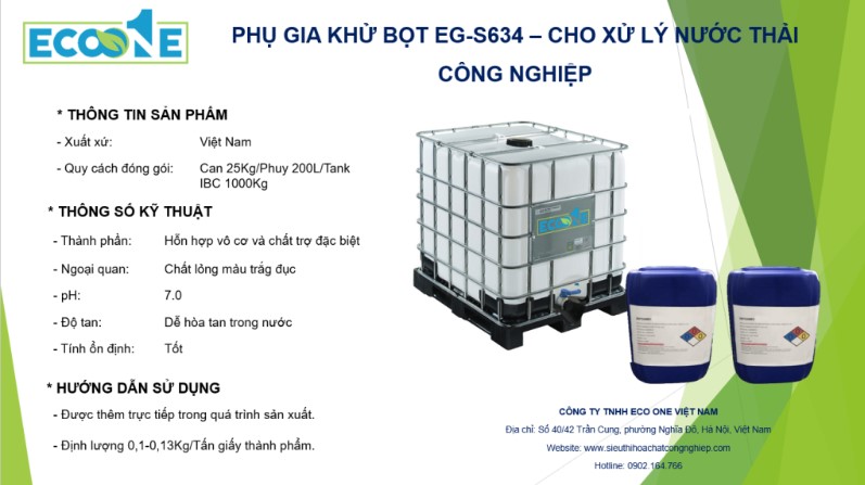 - EG-S634: chuyên xử lý nước thải công nghiệp